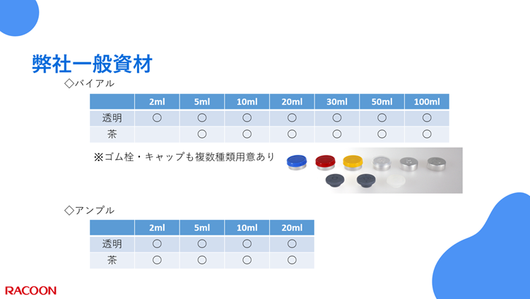 また、バイアル以外の容器、樹脂製品でも対応が可能です。