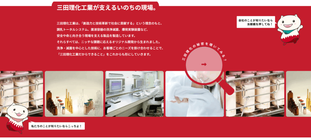 今回のリニューアルでは「みった」と「りっか」にも多く登場してもらっています。2024年に生まれた三田理化工業のコーポレートキャラクターで、親しみを持って、より分かりやすく説明する役割を担当してもらいます。