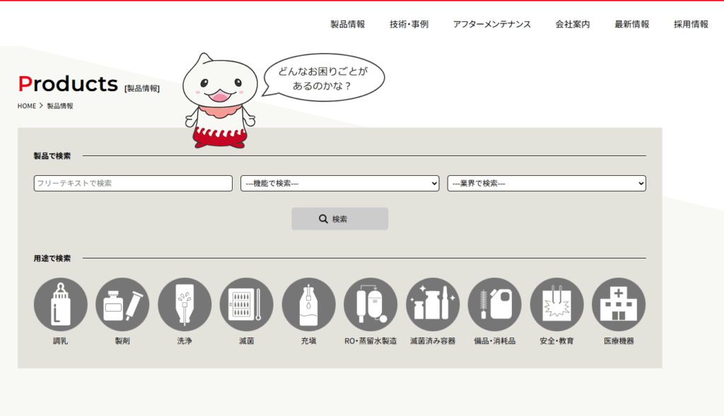 当社は機器事業部、消耗品事業部があり、それぞれに製品群があります。製品の機能や使用目的も多岐にわたり、お客様に必要な製品に到達するまでに迷うことがあります。