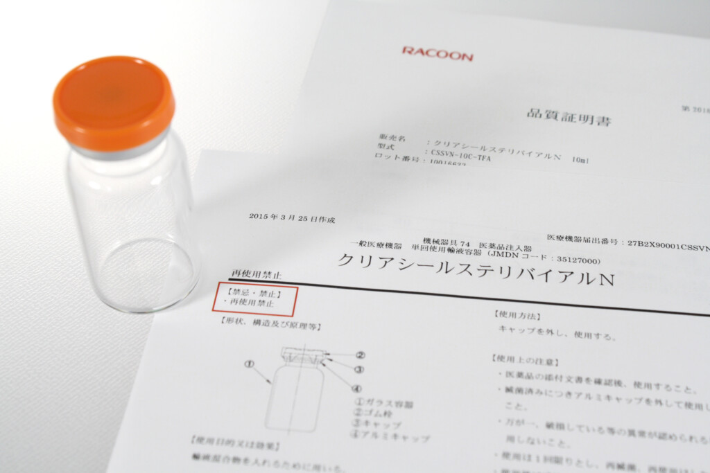 ※無菌性を保証するバイアルとしては、シールステリバイアル、クリアシールステリバイアルがございます。こちらは打栓巻締め済で、バイアル内部は無菌保証されている一般医療機器です。