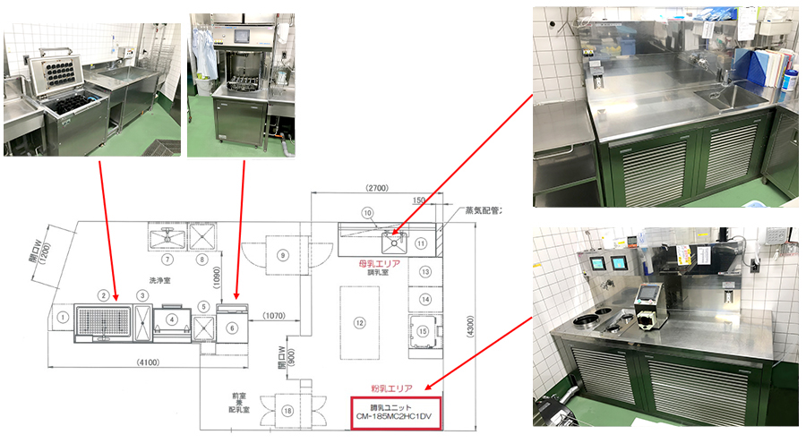 【粉ミルク調乳業務と母乳解凍分注業務を明確にゾーニング】