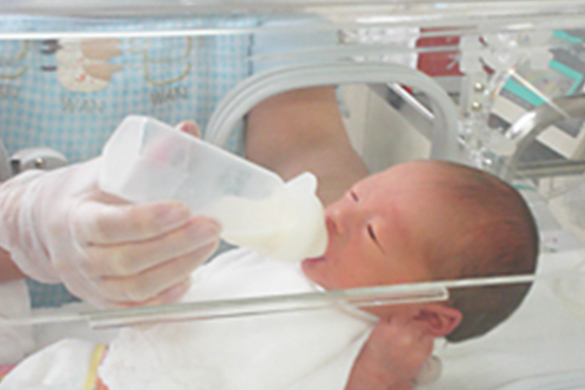 洗浄・滅菌済みのディスポーザブル哺乳瓶を活用して、調乳設備費のイニシャルコストを抑えて、安全な調乳をしています。少人数の患者の調乳を行う場合には、調乳設備のイニシャルコスト・メンテナンスコストに比べ、相対的にランニングコストが安価になる場合があります。