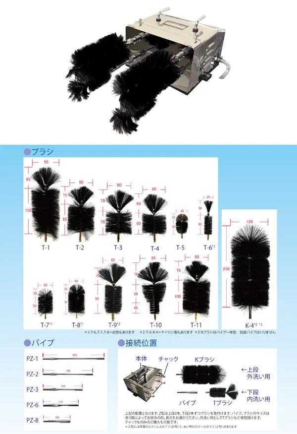三田万能洗浄機W型用&Z型用ブラシ/パイプ